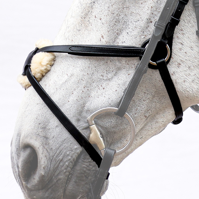 Anatomical shape and soft padding of the headpiece and noseband reduce pressure on sensitive nerve tracts. The headpiece has large ear cutouts and special padding at the level of the atlas (first cervical vertebra). The built-in rings provide maximum flexibility and thus the perfect fit. The soft leather padding under them prevents pressure and rubbing points.