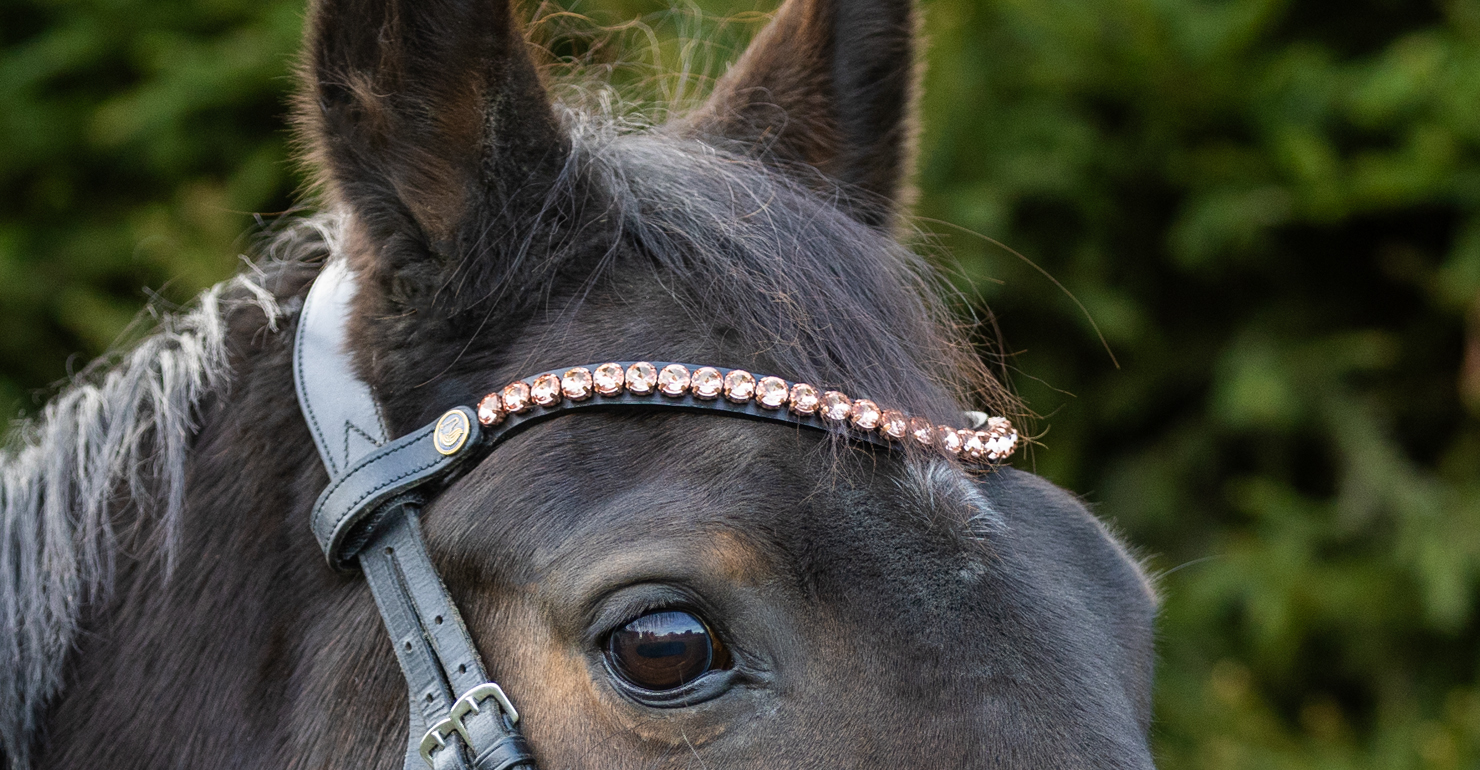 Our very limited browband Rosé Luxe is not only an eye-catcher but also a statement of style and quality. The sparkling Swarovski crystals in the rosegold shades add an artistic elegance to this browband.